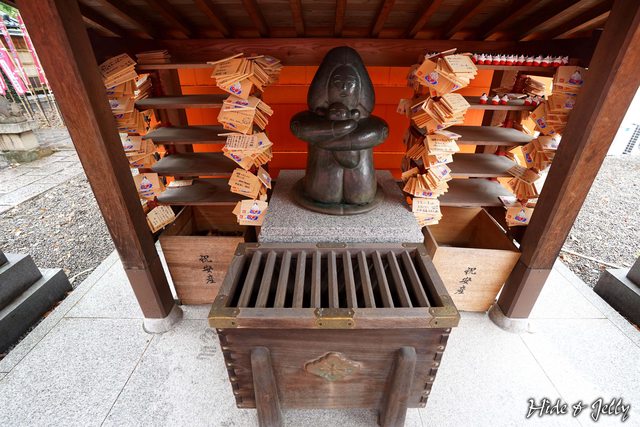 「種貸社」的手水舍也相當特別,是一位在鉢裡划船的小男生,他是誰呢?