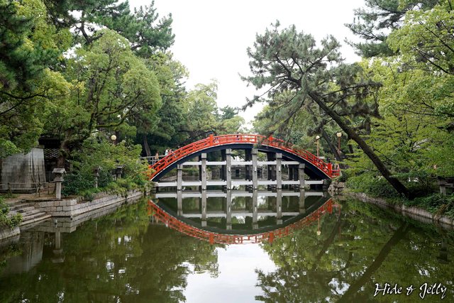 從水池旁,拍攝「逆反橋」,也是住吉大社必拍角度之一。