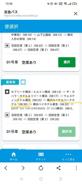 目前準備預訂京濱急行巴士的車班,