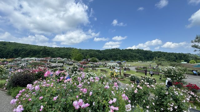 造訪日期:2024年6月上旬 以下文長圖多請見諒。 家母很喜歡花花草草跟看風景, 所以趁他們這次來日本的時候, 拉他們一起去自己有興趣的景點XD 第一站就是長岡市的越後丘陵公園, 公園內的ながおか香りのばら園每年會有二次花期, 分別是5月下旬到6月下旬即10月上旬到11月上旬。 園內有約800品種2400株各式各樣的玫瑰花。 詳細就不多說,有興趣可以參考官網: