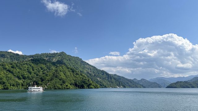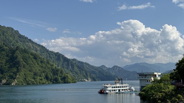 吃飽喝足之後就驅車前往下一個景點:奧只見湖 這邊也是同事推薦的新潟景點, 聽說賞楓時期人總是多到爆炸, 所以趁新綠時節先來去試試水溫。 車子從小出交流道出來之後, 一路跟著指標前往奧只見sliver line, 在抵達奧只見湖之前大約會有30分鐘都在隧道裡, 搭車的人可以睡覺,但開車的人是會有點煎熬XD 抵達停車場之後要到遊船搭乘處還需要爬一段山路, 不想爬的人也可跟我們一樣搭這個纜車上去XD