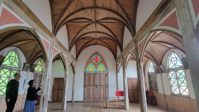 混合羅馬式、哥特式和和風建築風格,最大規模的木造教會堂