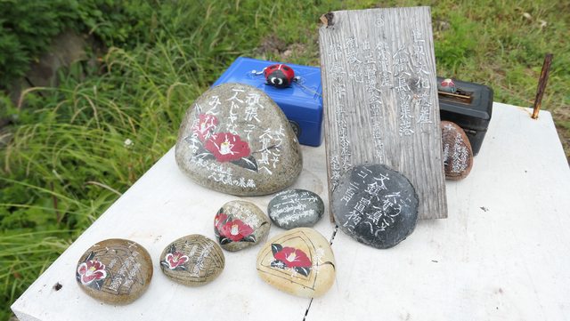 無人商店,石頭上面的字畫很精美,一個兩百円