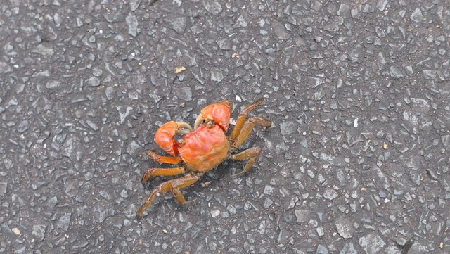 路上到處都是這種紅色的小螃蟹