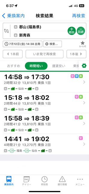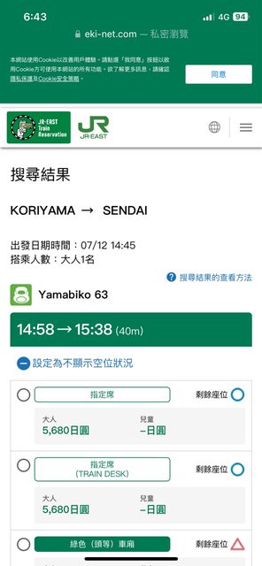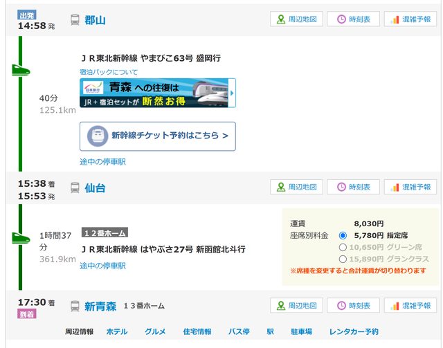 : 預計7/12要搭新幹線從郡山(Koriyama)到新青森(Shin-Aomori),中間要在仙台轉車一次