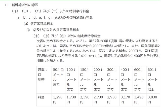 所以用在來線指定席特急料金說明(JR東日本旅客營業規則第125條)