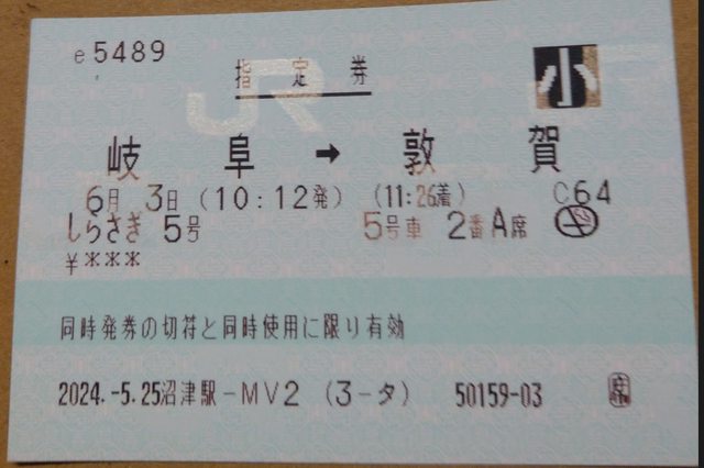 新幹線特急券