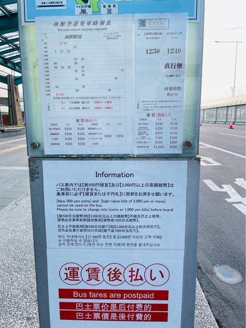 函館機場往函館駅巴士站在國內線前面