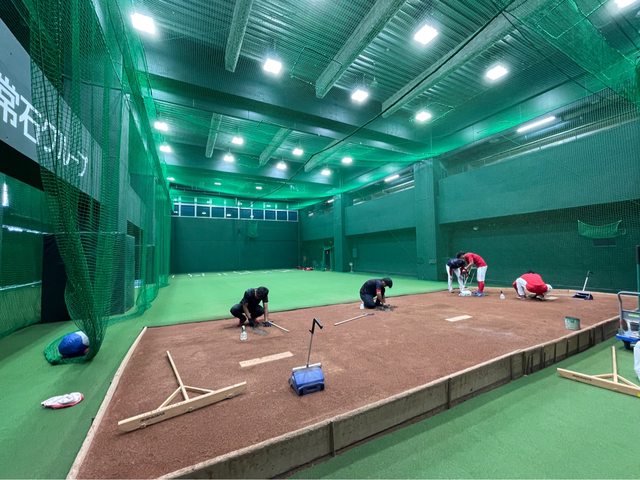 當天裡面有5-6個工作人員在整理投手丘