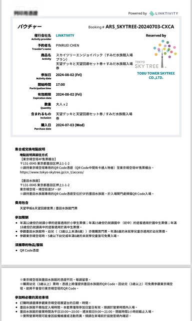 SKYTREE Enjoy Pack晴空塔&墨田水族館套票