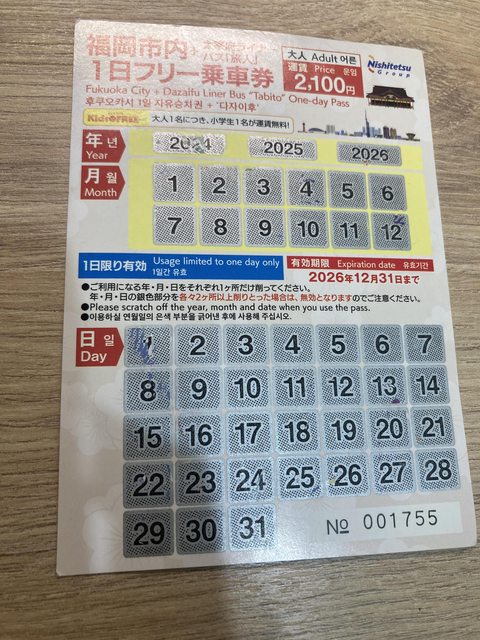 標題[讓售] 福岡市內1日乘車券含太宰府