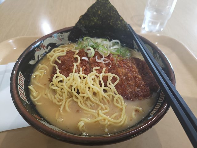 下午兩點搭纜車下山才知道山下纜車站有餐廳,趕緊吃碗炸豬排拉麵填飽肚子