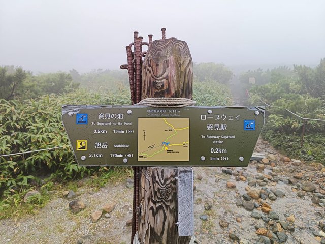 從姿見站到旭岳山頂三角點約3公里,爬升600m