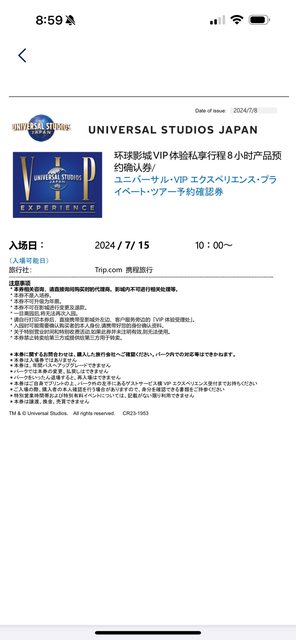 想跟版上的前輩請教,我們在Trip.com 上面購買了大阪環球影城的8小時VIP體驗行程, 昨