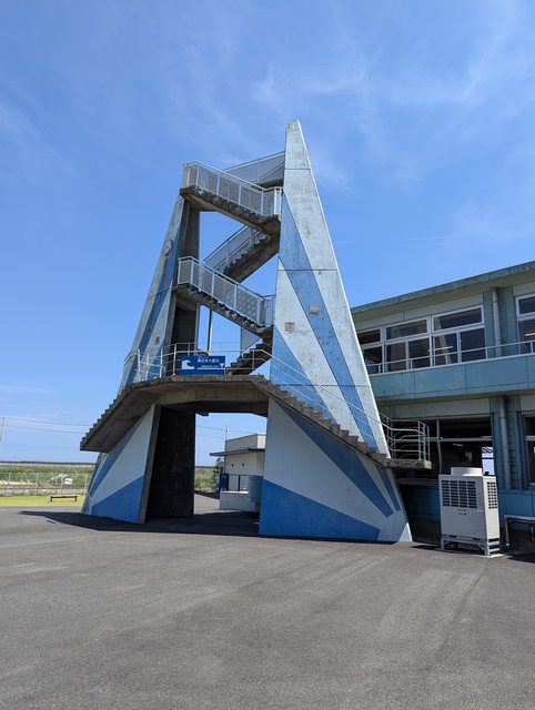 二樓教室可以遠望福島第一核電廠的煙囪