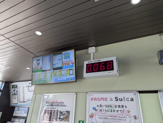 展示館和車站周邊幾乎都是非常低的 0.05μSv/h 上下