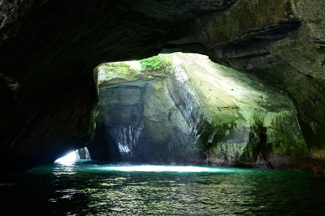 如耶穌光的奇特氛圍。船速漸漸降低,駕駛配合著在洞中迴轉,讓坐在船艙左右的遊客都