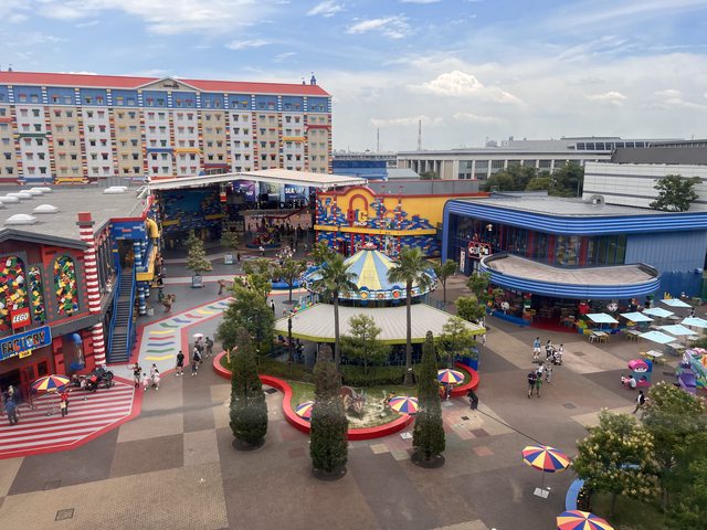 ▼高處俯瞰園區,前方是旋轉木馬,左前方是積木工廠。