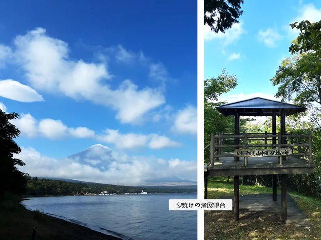 一早在富士松園飯店看完富士山後,我們就先前往山中湖南岸的第一站夕焼けの渚展望台