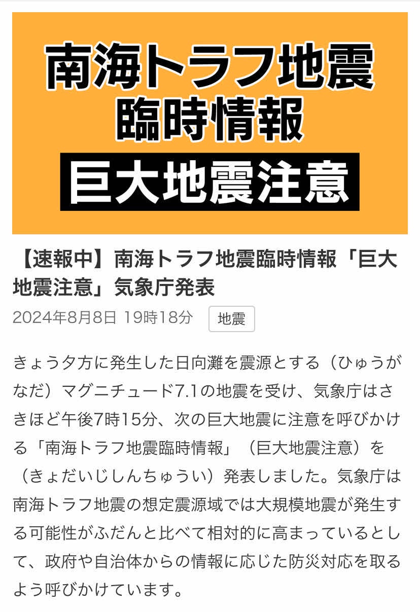 → mtcoat : 日本政府發布資訊 這一週發生南海海槽地震機率很高 08/08 20:56