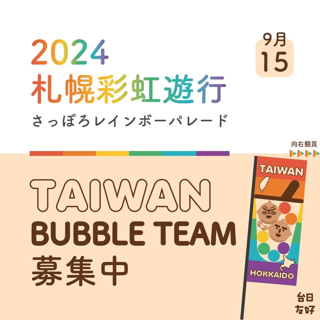 ,想邀請在北海道的台灣人,或者喜歡台灣的日本朋友一起加入「Taiwan Bubble Team」