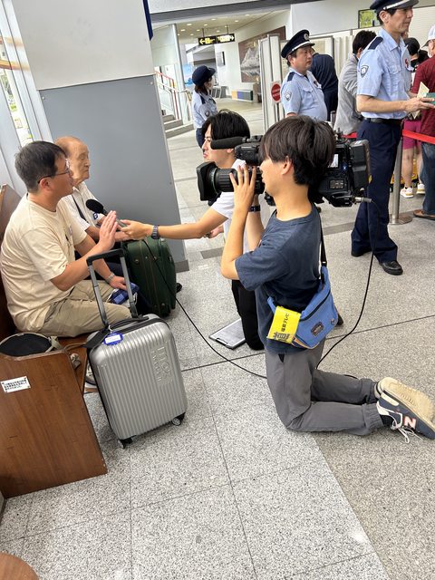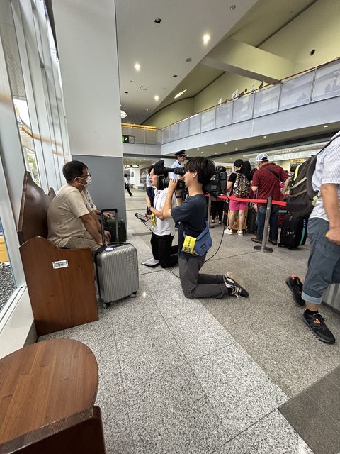 發現一組拿著攝影機的人員在機場這邊進行取材
