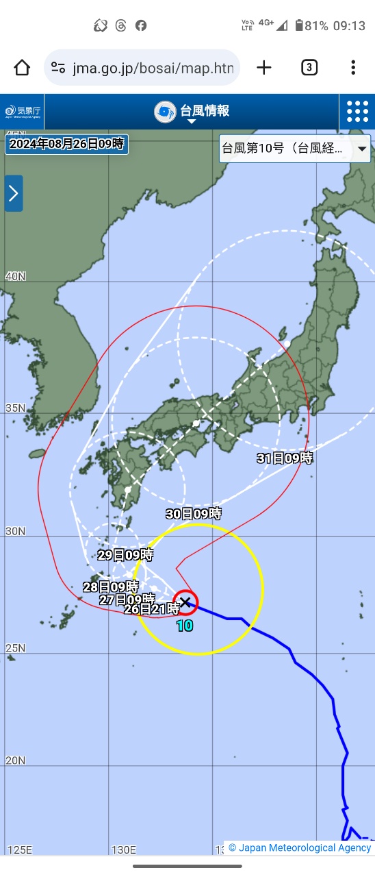 → ybite : 日本氣象廳最新報 走更慢了 30日才到沖繩 08/26 03:01