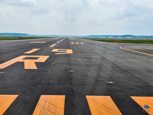 國際線航廈則是在國內線航廈另一側,是長條形建築,從跑道這是看不到的。
