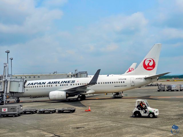 隔壁是執飛札幌到名古屋,JL3106航班的日航B737-800(JA345J)。