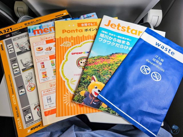 機上刊物、安全須知與垃圾袋。