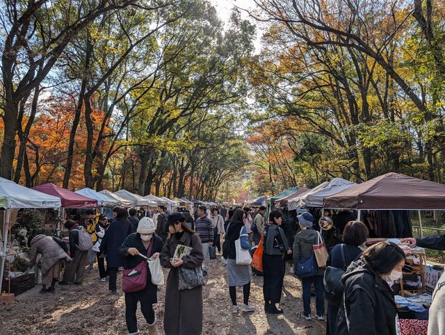 少紅葉。邊逛市集邊賞紅葉也是很愜意。