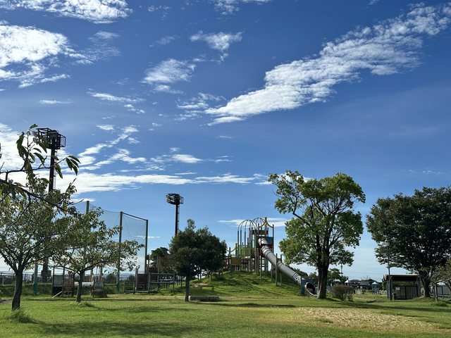 是個普通的公園適合居民帶小孩來放風 大溜滑梯看起來很有趣但這天氣溫高達38度完全不會想爬上去溜溜看...... 進入佐賀市區大概是9:00 把車停在佐嘉神社付費停車場 佐嘉神社