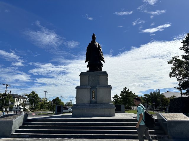 肉包不大但甜甜軟軟嫩嫩好吃 在這邊遇到一個阿姨聽到是台灣人就很開心一直說有看到台灣IT大臣很聰明 買完肉包後開車一小段路到佐賀城 城外迎接我們的是昔日佐賀藩藩主的鍋島直正銅像