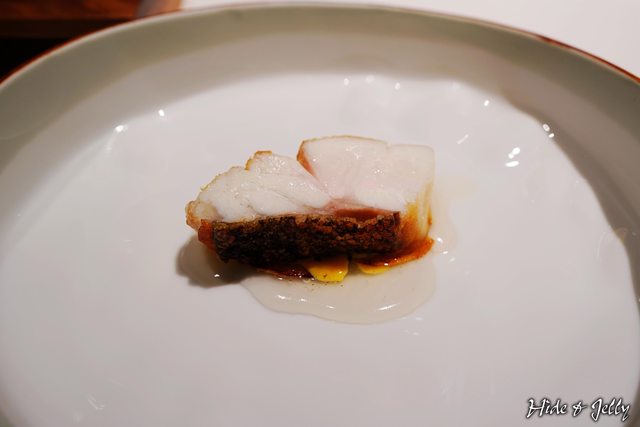 煎得酥脆,皮層下還保有鮮甜的脂肪,據說主廚是採用二次入火的方式料理,才能如此呈