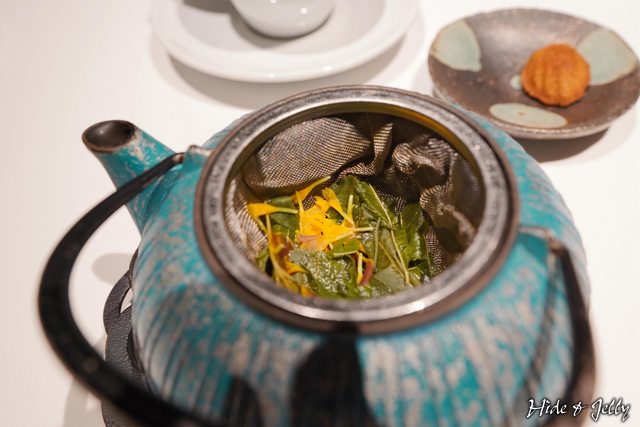 花草茶有點像是洋甘菊與日式煎茶的調配,底是煎茶再加一點淡淡的香氣。我們整套吃完