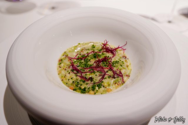 第四道是完全看不出來的澱粉料理,這是來自義大利托斯卡納(Toscana)的フレグラ