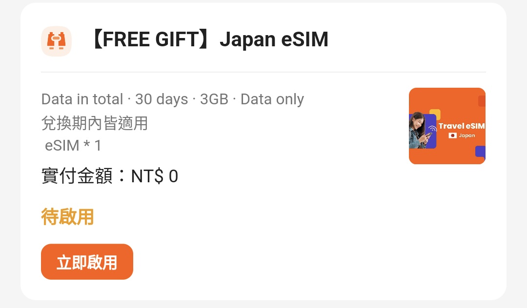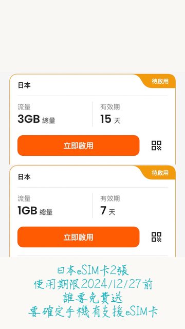 標題[贈送] 日本eSIM 卡 1G & 3G