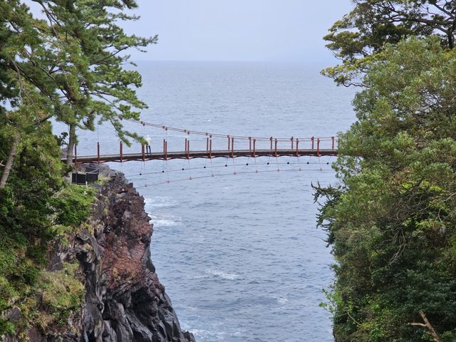 城崎海岸這邊有著壯麗的海岸和有名的門脇吊橋,在停車場旁邊就有個最適合拍吊橋和海
