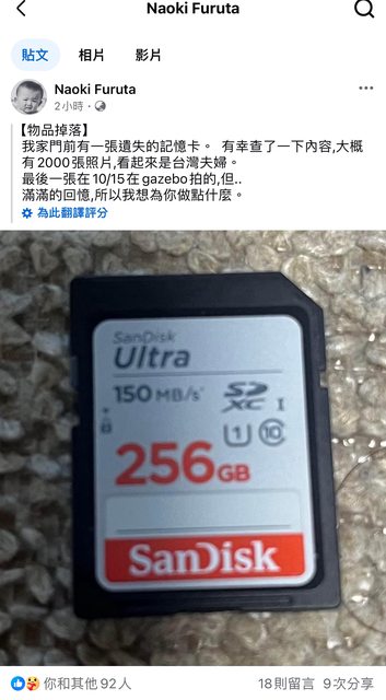 標題[資訊] 10/15合掌村拾獲記憶卡疑似台灣夫婦