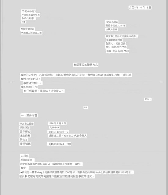 文件我也無從查證,我的立場只能相信租車公司及保險公司