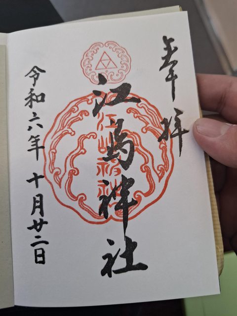 江島神社御朱印只要¥300真的超佛心,過3段手扶梯後過燈塔,往奧津宮的路上,就是不斷的下坡了,所以到奧津宮要回頭走,一定是辛苦的上坡...