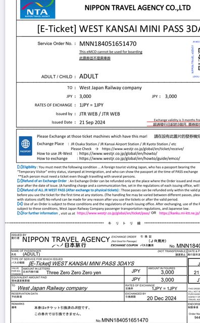 標題[讓售] 讓售 關西迷你三日周遊券