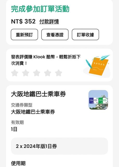 標題[讓售] 大阪地鐵一日券 實體票
