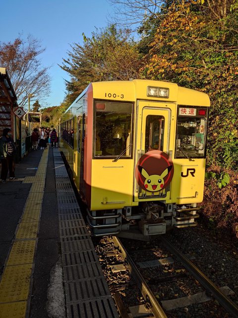 走完遊步道,再走一段大深澤步道,搭巴士回車站,前往猊鼻溪,不過大概可以預測人潮眾多,所以我並沒打算搭船,而此行最重要的,還是搭Pokémon Train。