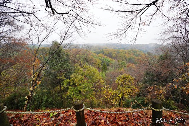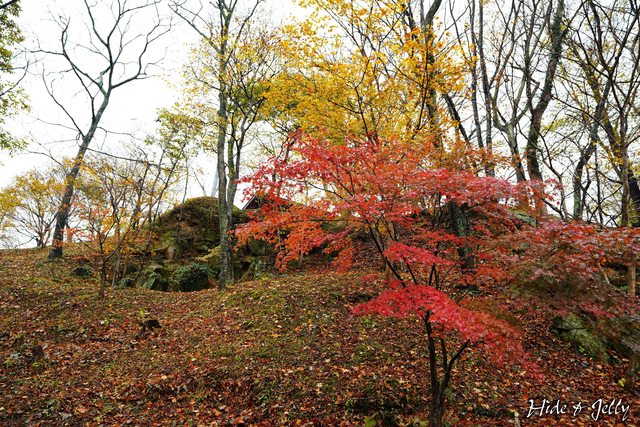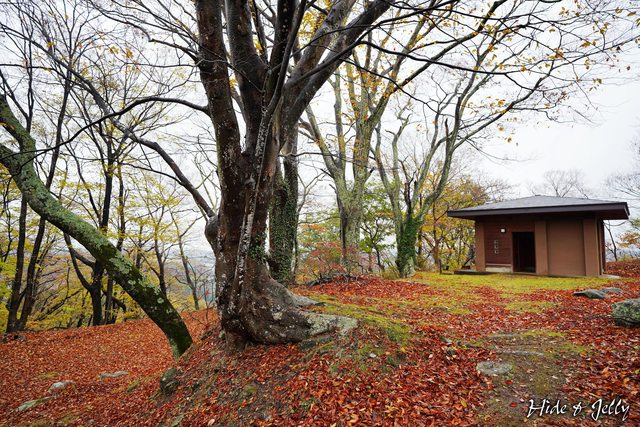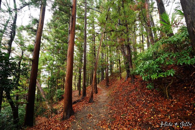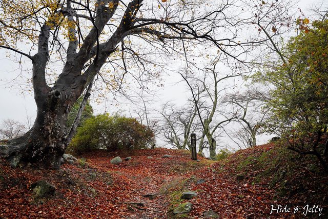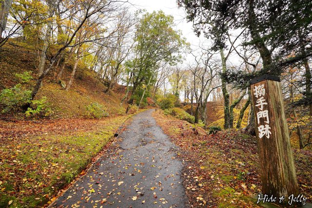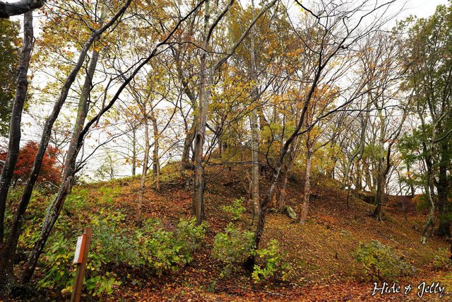 「搦手門跡」附近可以看到一些防禦措施的土壘,這個季節還有很多變葉木落葉鋪滿了地
