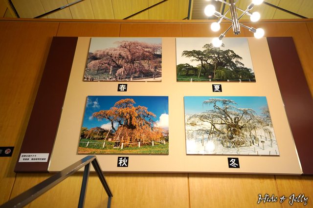 展示室位於二樓,梯間有三春瀧櫻一年四季的樣貌。