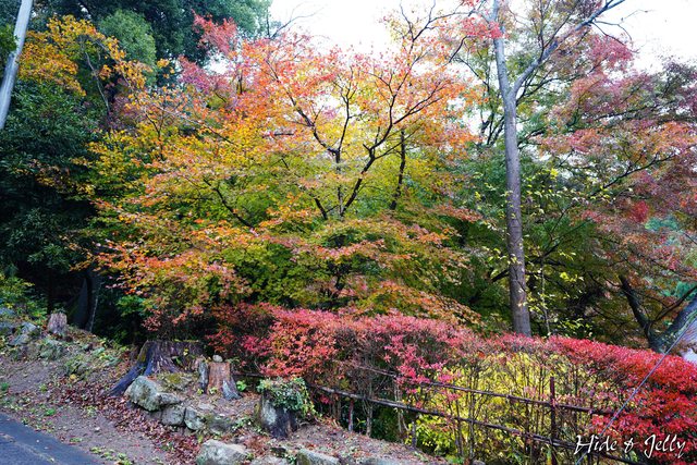 坂道旁也有不少已成漸層的楓葉。