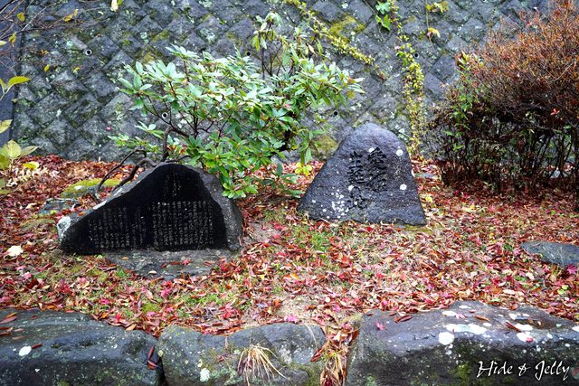 尊靈碑台的東側,有幾顆散落的石垣,依據剛剛「お城坂」的案內板,有一顆牛石、一顆