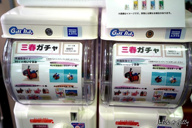 車站內還有「三春駒」扭蛋,還蠻可愛的耶!不過扭蛋內容是「引換券」再憑券兌換,看