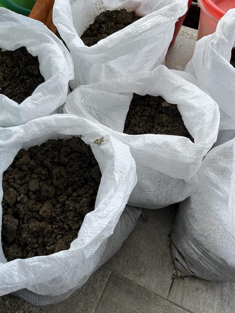附註:自家景觀花園的土壤,已用米袋裝好約半袋高,目前約有10袋能取。